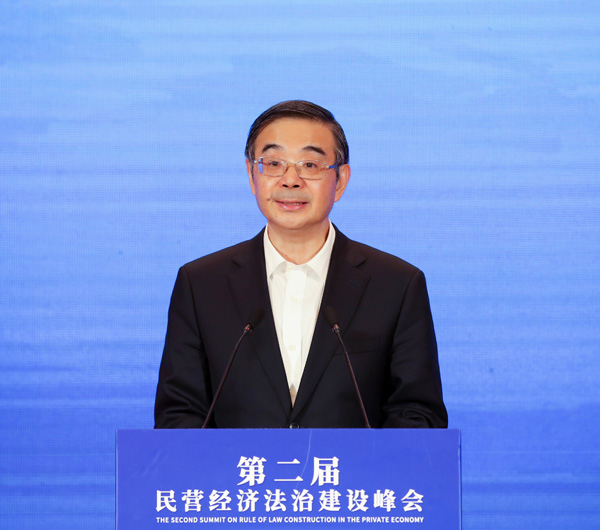 图为周强在第二届民营经济法治建设峰会上讲话。孙若丰 摄