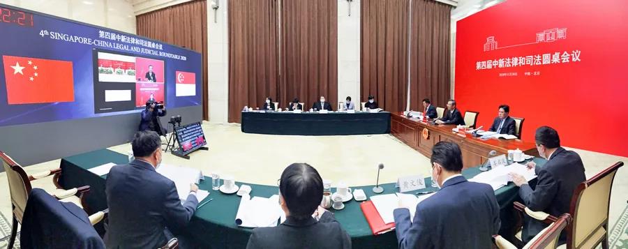 11月30日下午,第四届中新法律和司法圆桌会议以视频方式举行,中华人民共和国首席大法官、最高人民法院院长周强和新加坡最高法院首席大法官梅达顺出席开幕式并致辞。