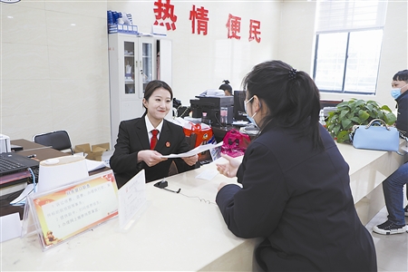 兰考法院诉讼服务中心退费窗口干警为当事人办理退费手续。徐艺珊 摄