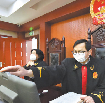 河北省邢台市内丘县人民法院法官进行线上庭审。