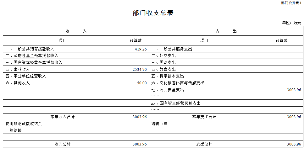 (一)部门收支总表