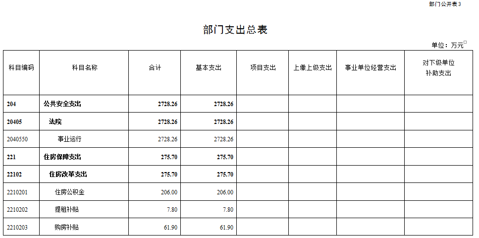 (三)部门支出总表