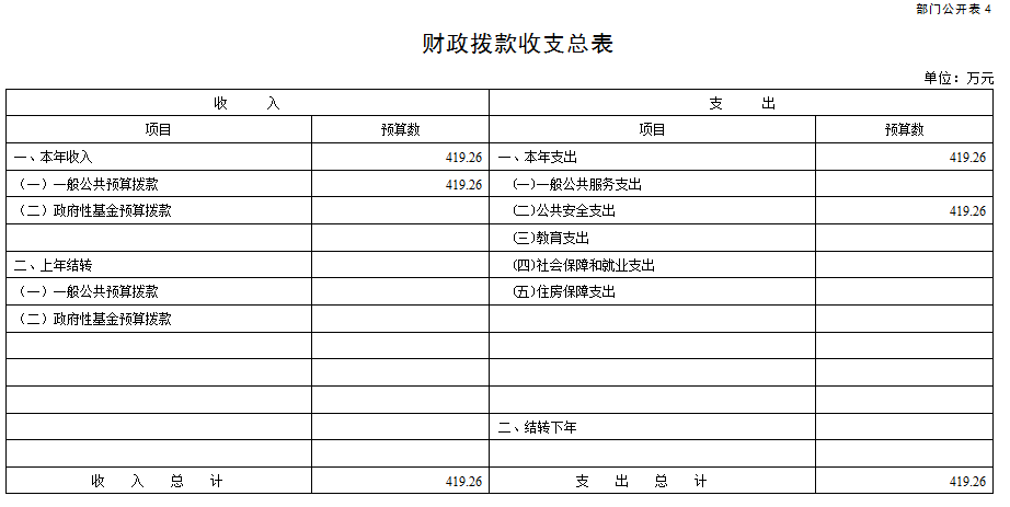 (四)财政拨款收支总表