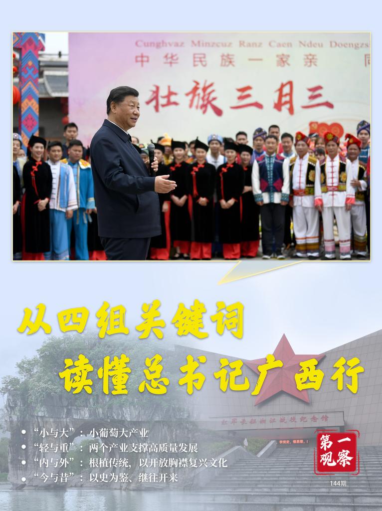 这一次,我们换个视角,通过“小与大”“轻与重”“内与外”“今与昔”四组关键词,读出总书记广西之行的深意。
