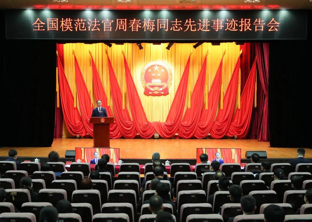 图为全国模范法官周春梅同志先进事迹视频报告会现场。孙若丰 摄