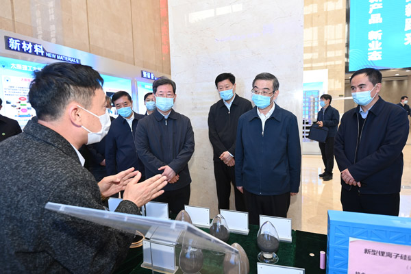图为周强、楼阳生在山西转型综合改革示范区展厅调研。史晓波 摄