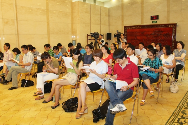 到会记者阅读新闻发布会材料