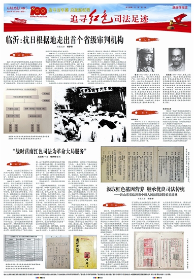 一首脍炙人口的《沂蒙山小调》,唱出了沂蒙儿女的心声。八十多年前,中国共产党领导的红色政权给这片青山绿水带来了翻天覆地的变化。司法,亦是根据地红色政权建设的重要组成部分。五月,记者一行走入齐鲁大地,探寻革命战争时期沂蒙大地的红色为民司法踪迹。