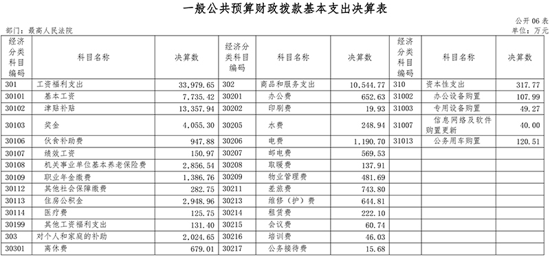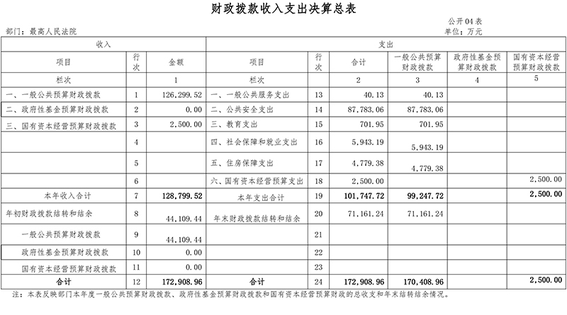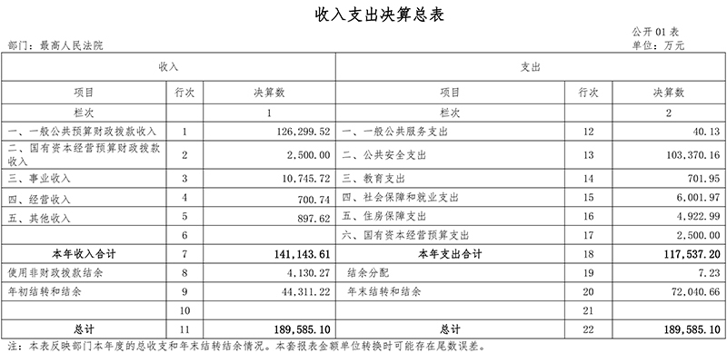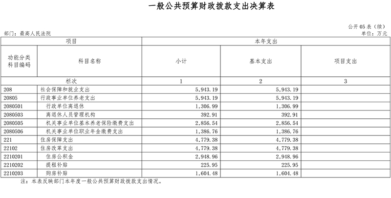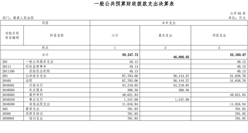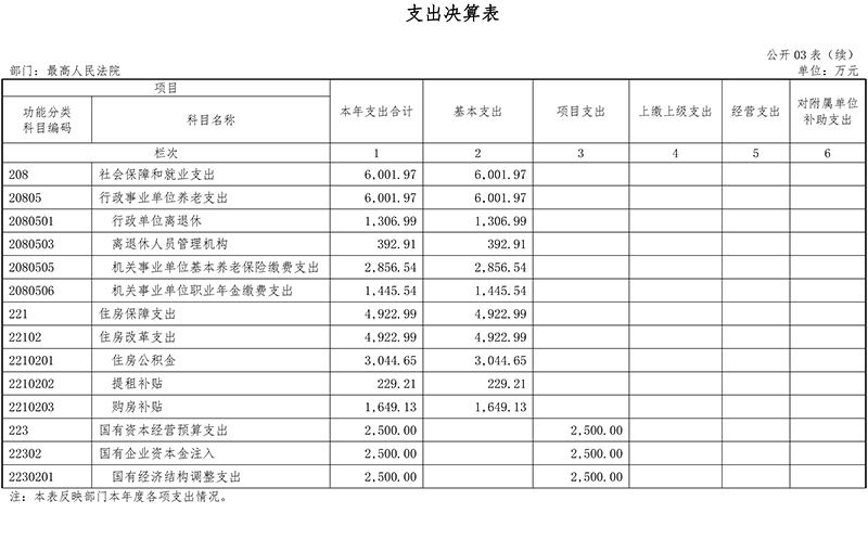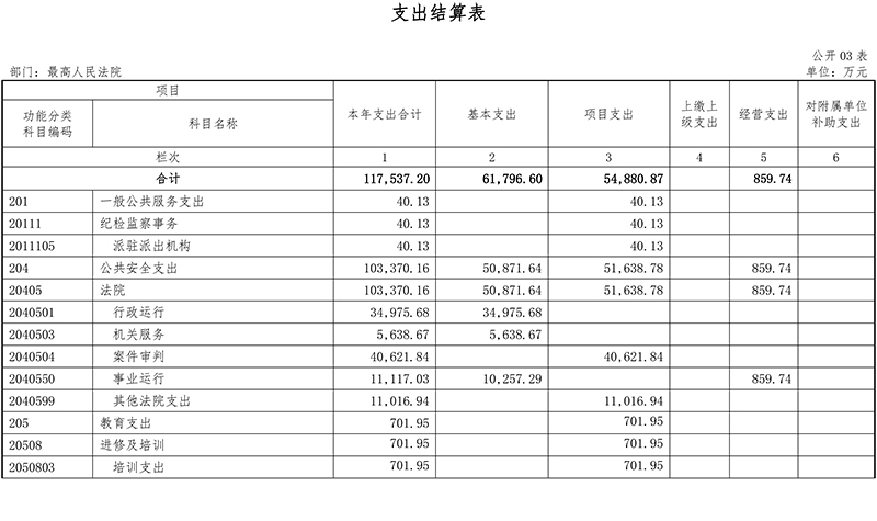 (十一)公共安全支出(类)法院(款):反映最高人民法院各项支出。