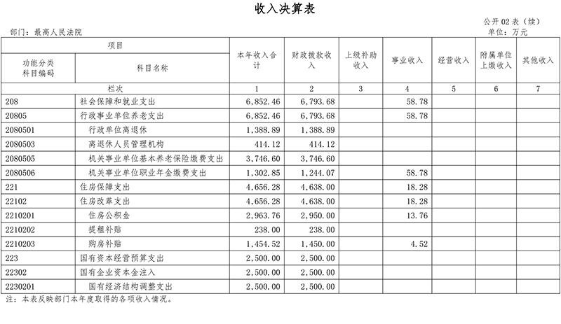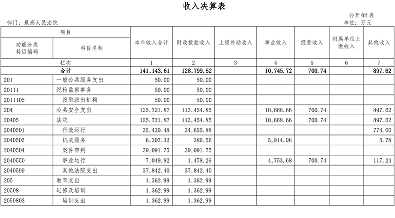 二、最高人民法院2020年度部门决算表