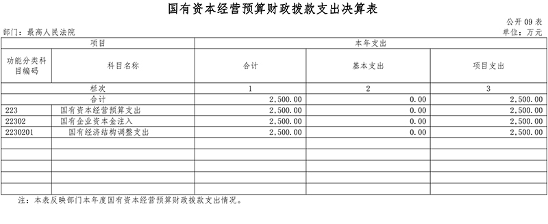 (6)国有资本经营预算支出(类)2,500万元,主要用于最高人民法院国有资本经营预算支出。
