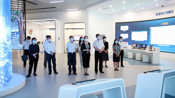 图为部分全国人大代表视察最高人民法院智慧法院实验室。孙若丰 摄