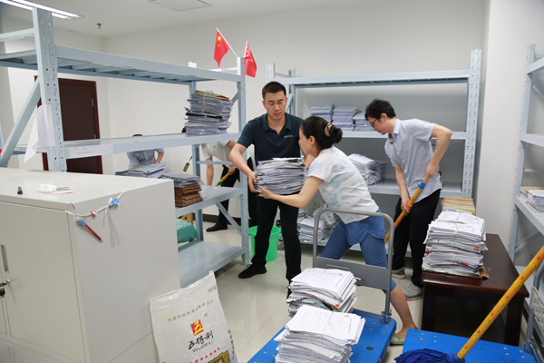 图为最高法四巡干警及时转移卷宗。 赵心慈 摄