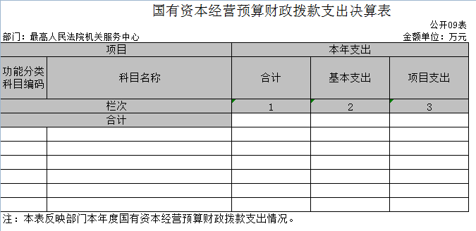 (九)国有资本经营预算财政拨款支出决算表