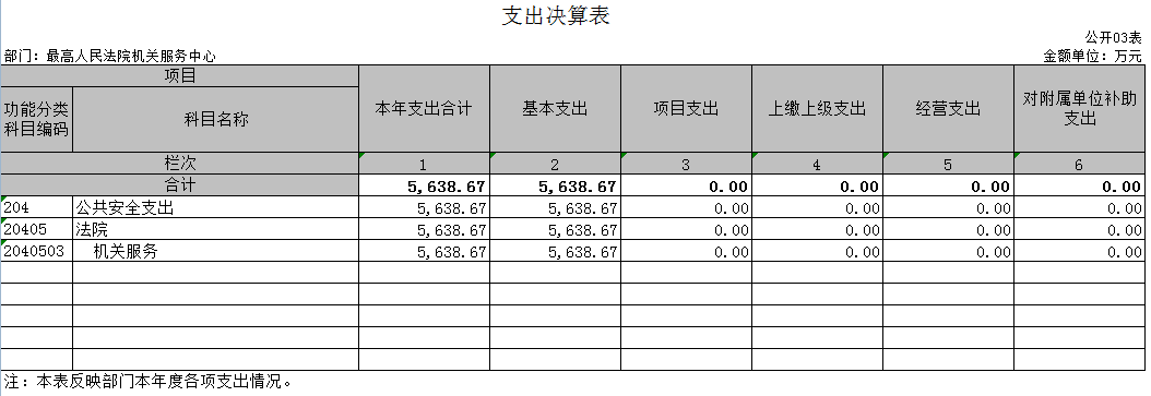 (1)公共安全支出(类)5638.67万元,主要用于最高人民法院机关服务中心及所属预算单位基本支出;