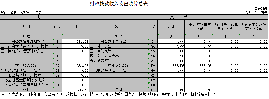 (1)一般公共预算财政拨款收入386.56万元。系最高人民法院机关服务中心当年从中央财政取得的一般公共预算资金。