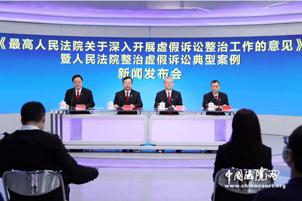 发布内容:发布《最高人民法院关于深入开展虚假诉讼整治工作的意见》暨人民法院整治虚假诉讼典型案例,并回答记者提问。
