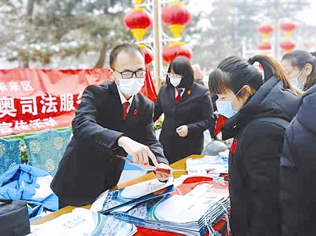 随着寒假已至、冬奥将近,保障队队员们考虑到受“冬奥热”的影响,来延庆出行游玩的人数会大量增加,在各大景区结合冬奥元素开展普法宣传,既能助力营造热情的冬奥氛围,又能让法律知识自然融入,将法律送到老百姓身边。心动不如行动,要做就做到最好。⇨下转第三版 ⇨上接第一版 保障队精心制作宪法、民法典、奥林匹克条例等普法宣传册,并编写了常见纠纷案例集,分别于冬奥倒计时30天、20天、10天的重要时间节点来到北京世园公园、八达岭长城、龙庆峡冰灯节等景区和现场,为赴延庆感受冬奥氛围的游客们送上普法宣传材料、开展法治宣讲,并设立“暖冬”巡回说事临时点,现场为游客们进行法律咨询。