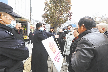 图为武汉中院执行局干警引导租户有序维权。李金星 摄