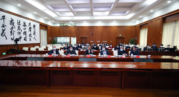 图为全国人大财经委到最高人民法院调研网络执行查控系统建设及运行情况,周强、徐绍史参加座谈会。孙若丰 摄
