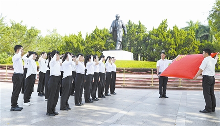 又是一年五月天。在广东省深圳市莲花山山顶邓小平同志铜像前,深圳法院团员青年面朝比凤凰花更红的团旗,高举右手郑重宣誓:“我志愿加入中国共产主义青年团,坚决拥护中国共产党的领导……”慷慨激昂的铮铮誓言传递出了“请党放心,强国有我”的时代强音。