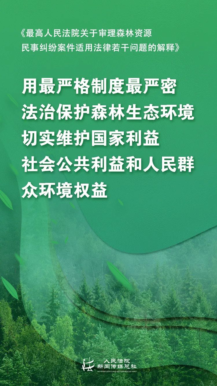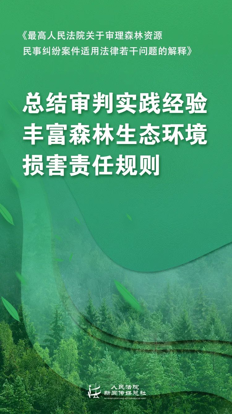 6月14日,最高人民法院发布了《最高人民法院关于审理森林资源民事纠纷案件适用法律若干问题的解释》(以下简称《解释》)及其配套典型案例,体现了人民法院充分发挥环境资源审判职能作用,用最严密法治保护森林生态环境的决心与力度。