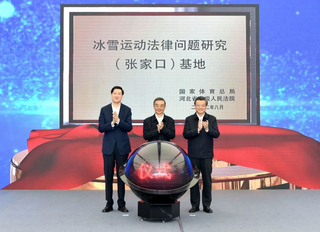8月25日,由国家体育总局和河北省高级人民法院共建的冰雪运动法律问题研究(张家口)基地在河北省张家口市崇礼区成立。最高人民法院党组书记、院长周强,河北省委书记倪岳峰,国家体育总局局长、党组书记高志丹共同为基地揭牌。