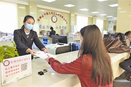 二○二二年一月,福建省泉州市中级人民法院跨域诉讼服务中心受理一起工程施工合同纠纷案件的跨省立案申请。该院形成的“创新和发展跨域立案诉讼服务着力破解异地诉讼难问题”改革举措,荣获首届“人民法院改革创新奖”。庄悦摄