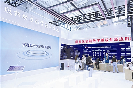 2022年8月31日至9月5日,北京版权保护中心与北京互联网法院携手打造的“版权链-天平链行政司法协同治理平台”2.0版本亮相2022年中国国际服务贸易交易会。曹益 摄