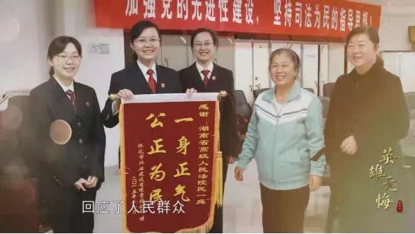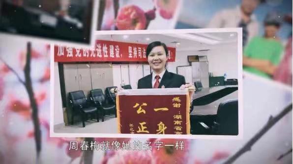 2022年初,中央政法委印发通知,评选出200名政法战线的“双百政法英模”。为了更好地弘扬这些政法英模拼搏向上的人生态度、感人至深的为民情怀,在全社会形成“崇尚英雄、争做英雄”的氛围,中央广播电视总台社教节目中心《一线》栏目安排多路记者,赶赴湖南、广东、浙江、福建、河南、新疆等地,对其中十位“双百政法英模”的感人故事、奋斗精神进行了深入挖掘和细致拍摄。而这十位英模,就包括来自湖南省法院系统的代表:湖南省高级人民法院审判监督第一庭原副庭长周春梅。