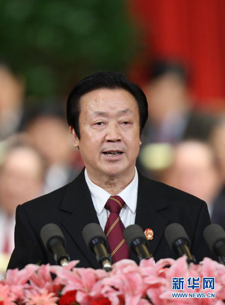 3月11日,十一届全国人大五次会议在北京人民大会堂举行第四次全体会议。最高人民法院院长王胜俊作最高人民法院工作报告。 新华社记者 姚大伟 摄
