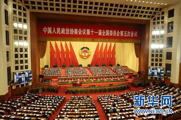 (两会授权发布)全国政协十一届五次会议举行第四次全体会议 贾庆林出席