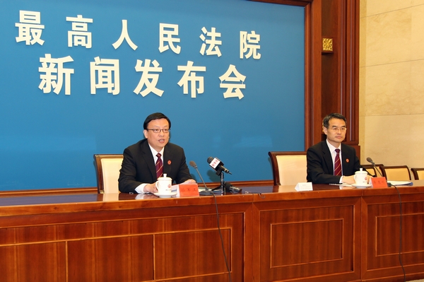 发布会主席台 最高人民法院新闻发言人、办公厅副主任孙军工主持发布会 最高人民法院司法体制和工作机制改革领导小组办公室副主任蒋惠岭回答记者提问 发布会记者席 中国日报记者提问 南方都市报记者提问