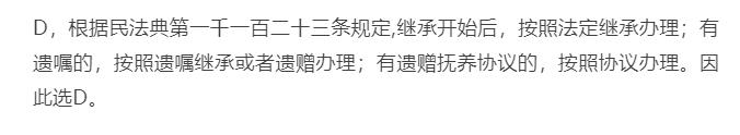 D.等等,先看大爷有无立下遗嘱。