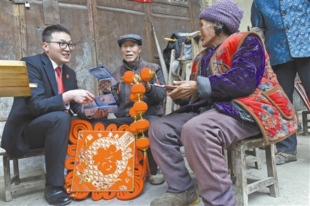 图③:法院干警在庭审后为村民普法,并送上新春祝福。