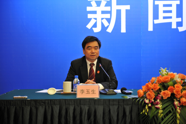 江苏省高级人民法院副院长李玉生会后接受记者采访
