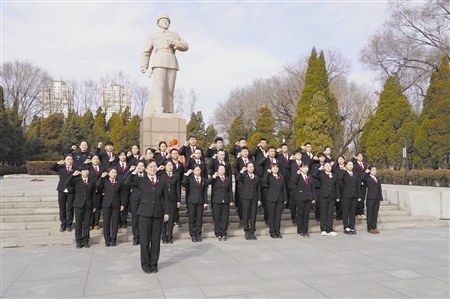 2月28日,抚顺中院组织全市法院历届获评“雷锋式法官(干警)”的35名代表,在雷锋纪念馆重温入党誓词。 胡 波 摄