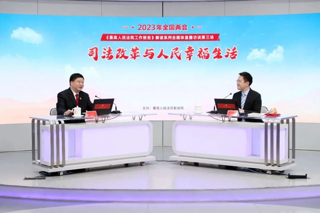 3月8日上午,最高人民法院举办2023年全国两会《最高人民法院工作报告》解读系列全媒体直播访谈第三场活动。最高人民法院司法改革领导小组办公室负责人、国际合作局副局长何帆围绕“司法改革与人民幸福生活”与网友在线交流。