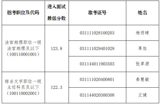 因部分考生放弃面试资格,根据公务员考录有关规定,在公共科目笔试合格的考生中,按照笔试成绩由高到低的顺序,递补以下考生为面试人选(按准考证号排序):