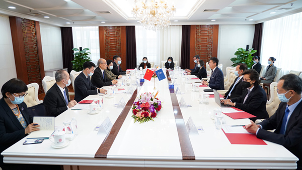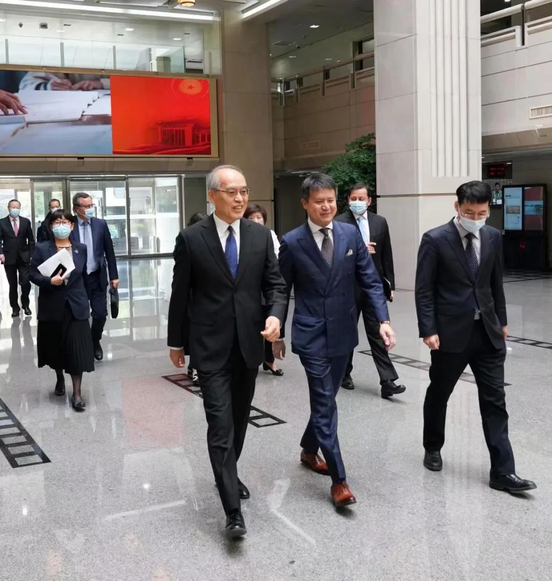 4月25日上午,最高人民法院院长张军在京会见世界知识产权组织总干事邓鸿森一行。
