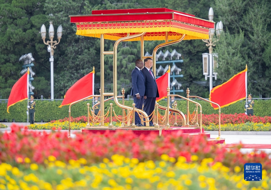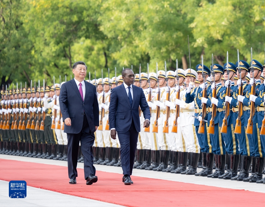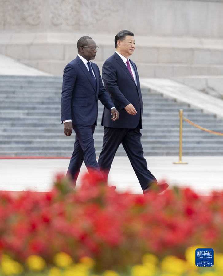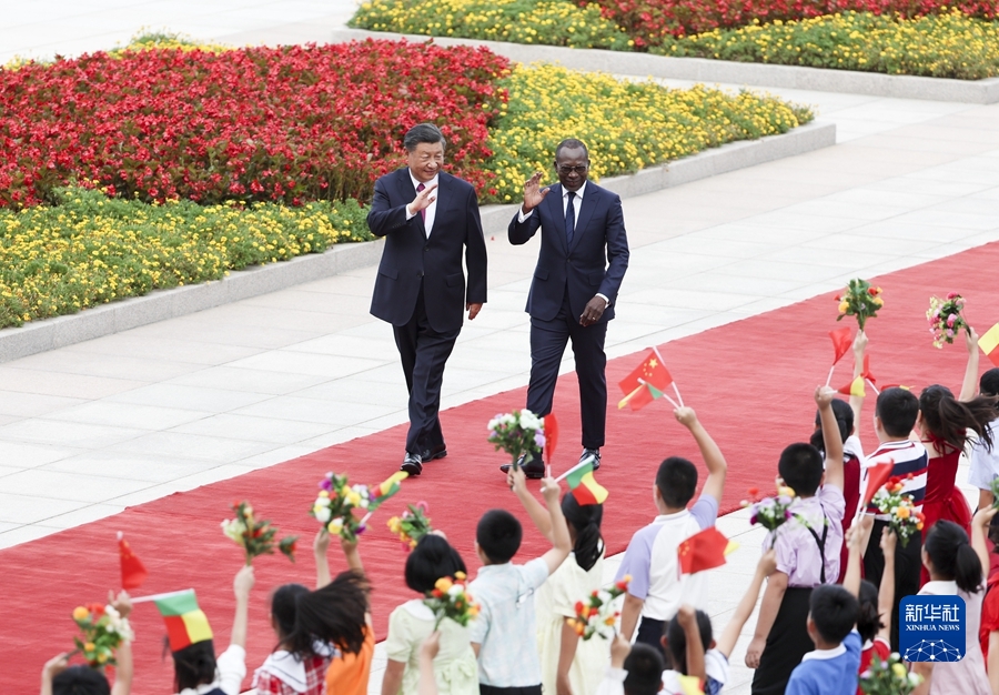 9月1日下午,国家主席习近平在北京人民大会堂同来华进行国事访问的贝宁总统塔隆举行会谈。这是会谈前,习近平在人民大会堂东门外广场为塔隆举行欢迎仪式。新华社记者 翟健岚 摄