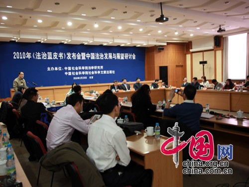 中新网2月25日电 中国社会科学院于2月25日上午9:00在中国社科院第一学术报告厅举行“2010年《法治蓝皮书》发布会”,并于会上发布《中国法治发展报告No.8(2010)》。