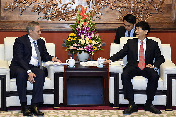 乌兹别克斯坦副总理阿齐莫夫举行中乌政府间合作委员会双方主席会晤。郝 帆 摄