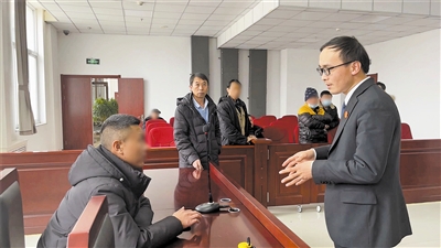 图为法官向包工头吴某释法说理。王宇阳摄