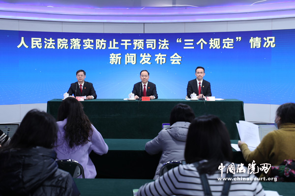 发布内容:介绍人民法院落实防止干预司法“三个规定”情况,发布全国法院涉“三个规定”典型案例,并回答记者提问。