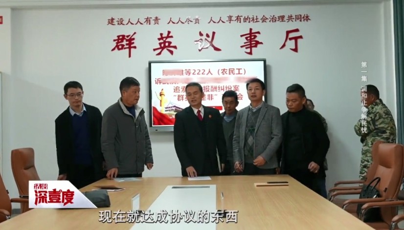 湖南省岳阳市岳阳楼区人民法院康王人民法庭庭长陈正荣:这个“群英断是非”在我理解就是发动群众,用群众的智慧解决群众的问题,做到案结事了。住建是管这个建筑的,人社是管民工工资的,让他们从政策、从行政的方式来说服这些建筑商和开发商,然后我们又请了社区的调解员,因为这个项目就他们社区每次发生什么事情,他是最清楚的。我们又请了两个别的建筑工地的农民工代表,他们也遇到过欠薪的事情,他们怎么处理的,然后他也可以说服这些农民工还是依法维权,不要通过这种闹事、信访的方式解决问题。同样是农民工,他们可能更能形成共鸣,一旦形成共鸣,他就很能听取你的意见。