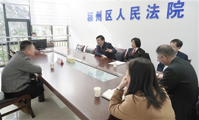 图为二⚪二三年十二月六日,安徽高院党组书记、院长田云鹏在阜阳市颍州区人民法院接待信访当事人。 蔡维琪 摄