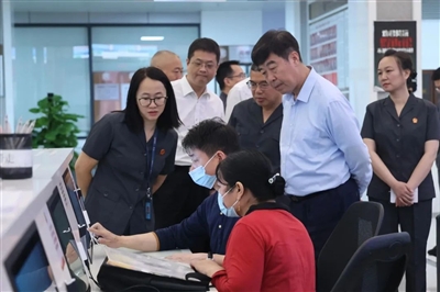 图为2023年4月19日,全国人大代表,广东省高级人民法院党组书记、院长张海波到佛山市南海区人民法院调研前端治理、多元解纷工作机制运行情况。徐志毅 摄