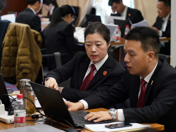 最高人民法院代表委员审议讨论意见梳理反馈工作专班同志工作瞬间。