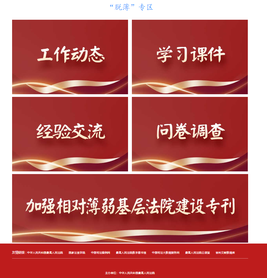 为全面贯彻落实最高人民法院关于加强全国相对薄弱基层法院建设工作的部署要求,国家法官学院充分利用网络培训精准施训、资源共享、全面覆盖、方便快捷的优势,依托“中国法官培训网”开辟“脱薄”专区,于2024年7月4日正式上线。